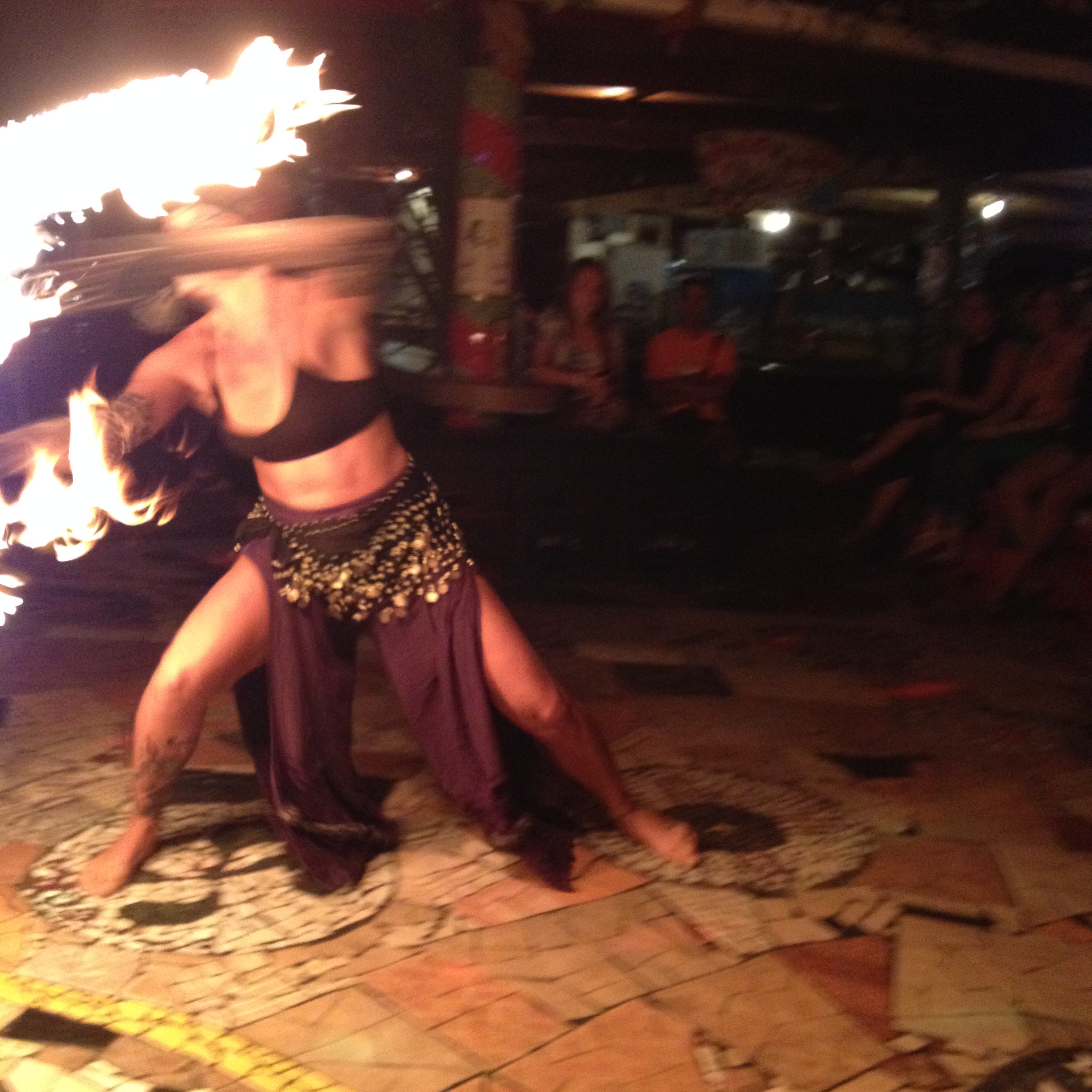 After going to the beach, we went back to the Hostel and hung out for a bit and then went into town. When we arrived back to Rocking J’s from town we watched a live fire show.