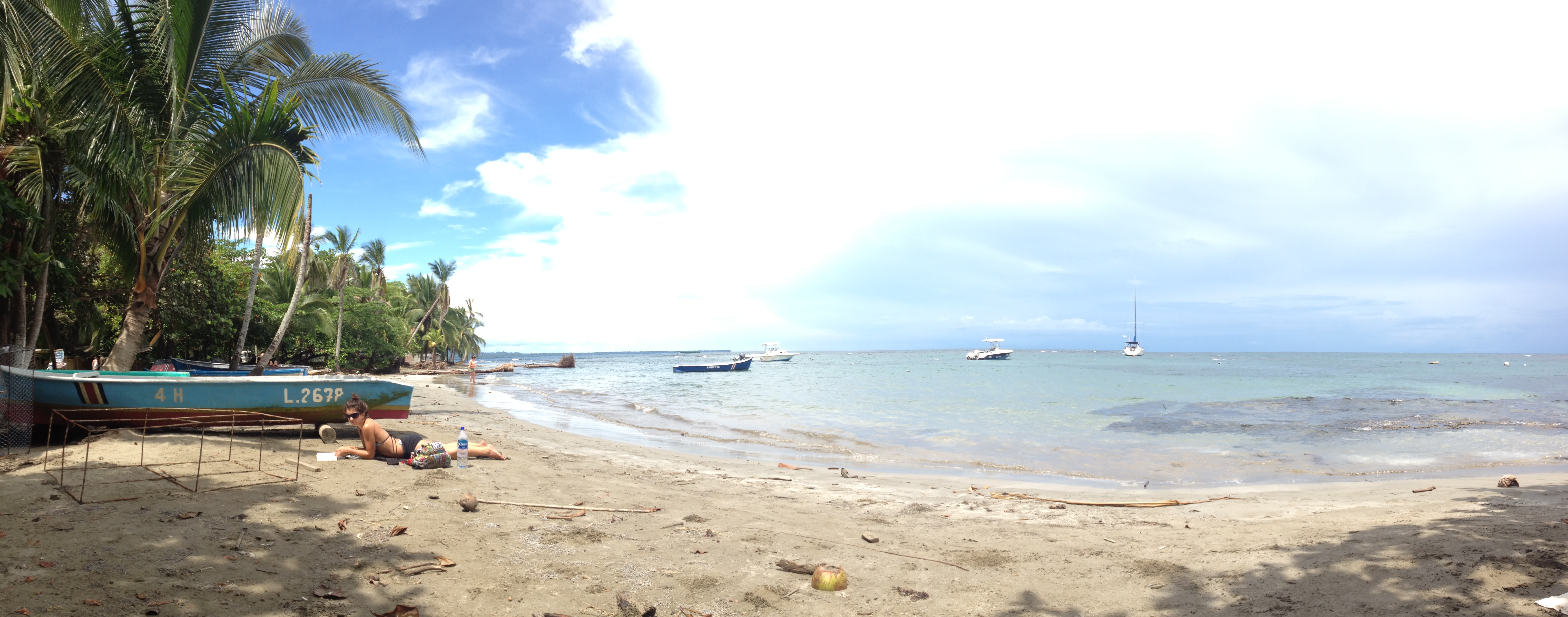 Ok, fast forward a few hours and 7 missed calls. I frantically wake up to my classmates telling to hurry up and get dressed because they’re almost at my door. Thankfully, we were able to get to the bus station in San Jose on time. The bus ride from San Jose to Puerto Viejo took about 4 1/2 hours. Once we got to Puerto Viejo we went to our beachfront Hostel – Rocking J’s. Without hesitation we decided that we needed to go to Playa Cocles which was a 10 minute walk away.